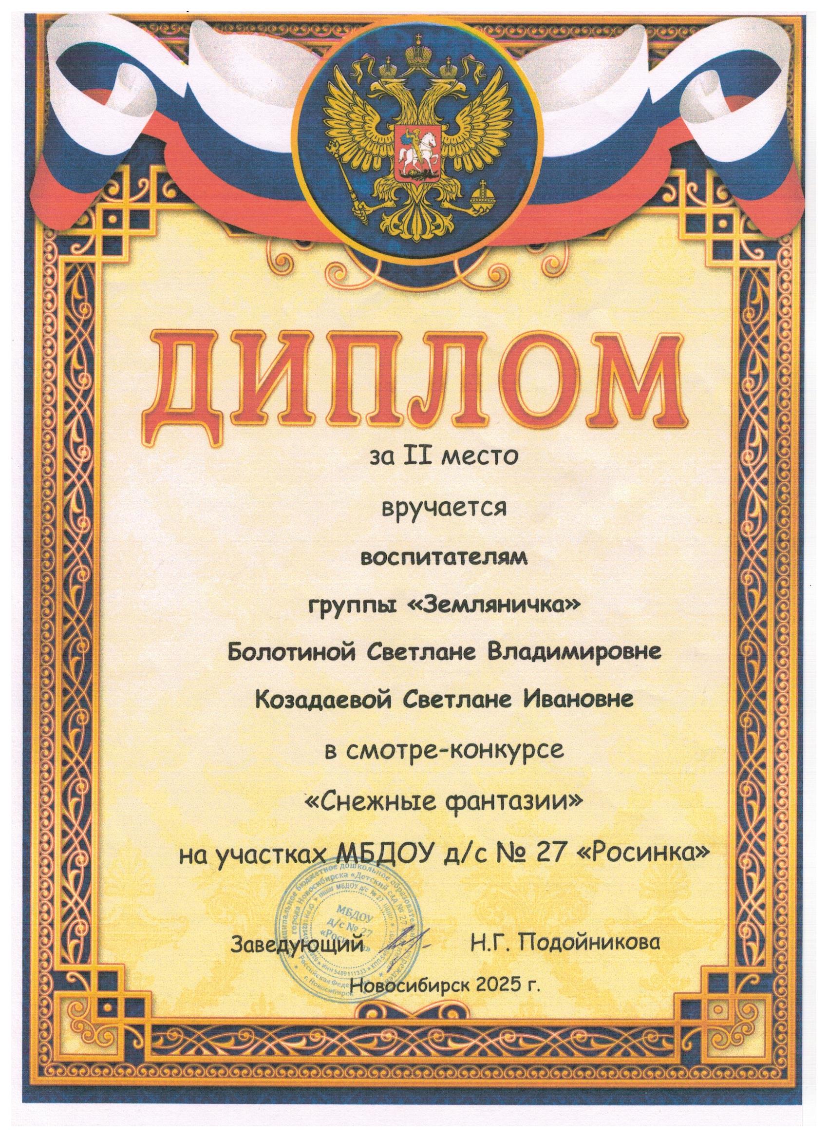 Диплом 2 место Снежные фантазии
